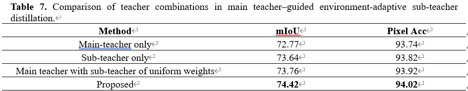 Multi-teacher를 둔 이유: 악천후 별 편향은 단일 teacher으로는 불가