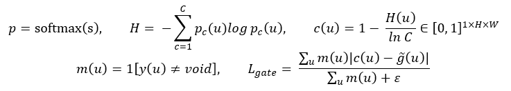 이후 main teacher의 gate map을 라벨 해상도에 맞게 보간하고, ignore label(void 등)은 마스크로 제외한 뒤, Lgate와 같이 L1로 맞춥니다.