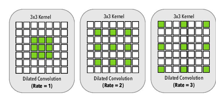 dilated convolution은 receptive field를 넓히면서도 파라미터 수를 크게 늘리지 않는다는 점에서 segmentation 같은 작업에서 자주 사용됩니다.