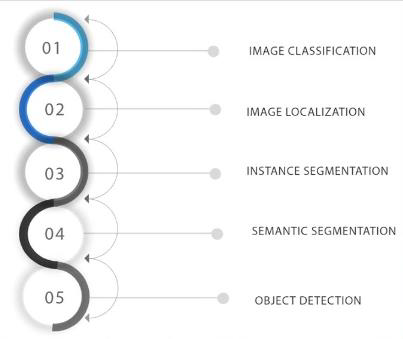 하나는 딥러닝 비전 작업이 얼마나 정밀하게 예측하느냐에 따라 classification, localization, detection, segmentation으로 나뉜다는 점입니다.