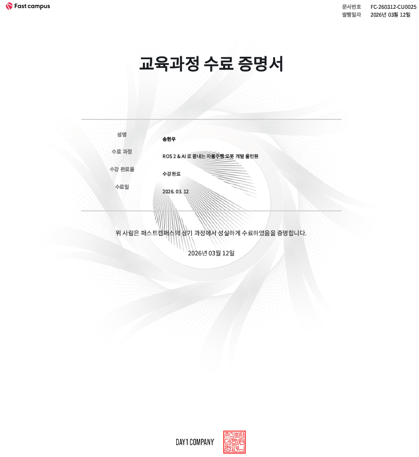 - ROS 2์ Package, Node, Launch, Topic, Service, Action, ๋๋ฒ๊น ๋๊ตฌ๋ฅผ ์ค์ตํ๋ฉฐ ๋ก๋ด ์ํํธ์จ์ด ๊ฐ๋ฐ ๊ตฌ์กฐ ํ์ต